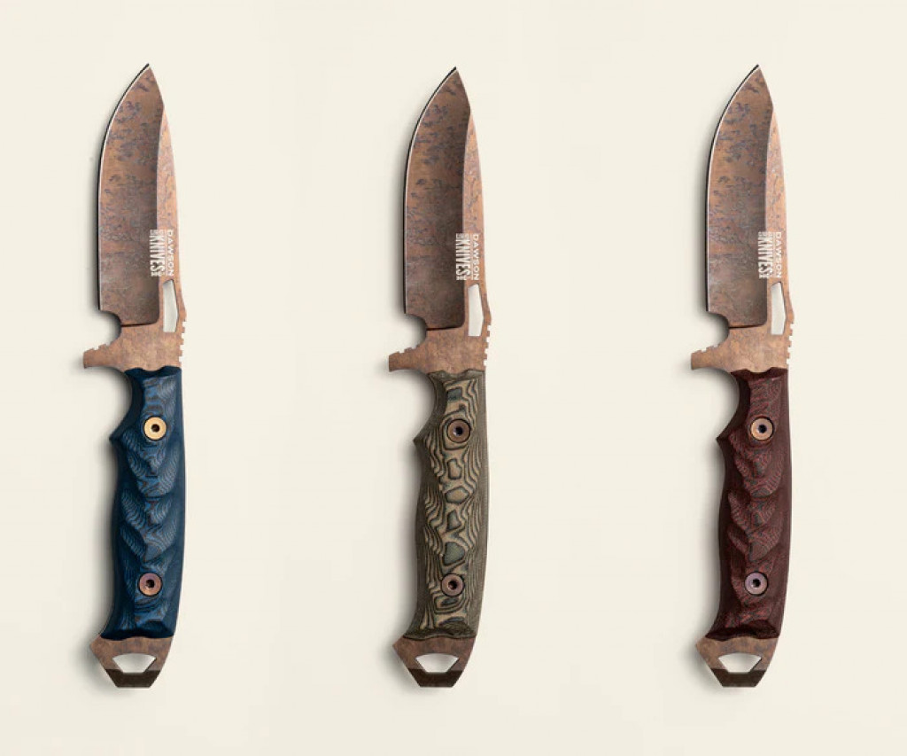 NOVINKA: Teraz s novým logom Dawson Knives! Povrchová úprava čepele Arizona Copper – povrchová úprava v medenej a klenotovej farbe pripomínajúca legendárne západy slnka v Arizone. Nízka odrazivosť a povrchová úprava čepele vhodná pre styk s potravinami, ideálna na spracovanie zveri a varenie v kempe. 100 % navrhnuté a ručne vyrobené v USA .3,55 mm hrubá CPM MagnaCut nerezová prášková oceľ Ďalší vývoj v oblasti ocele na čepele – opotrebenie ostria 2x dlhšie ako D2
