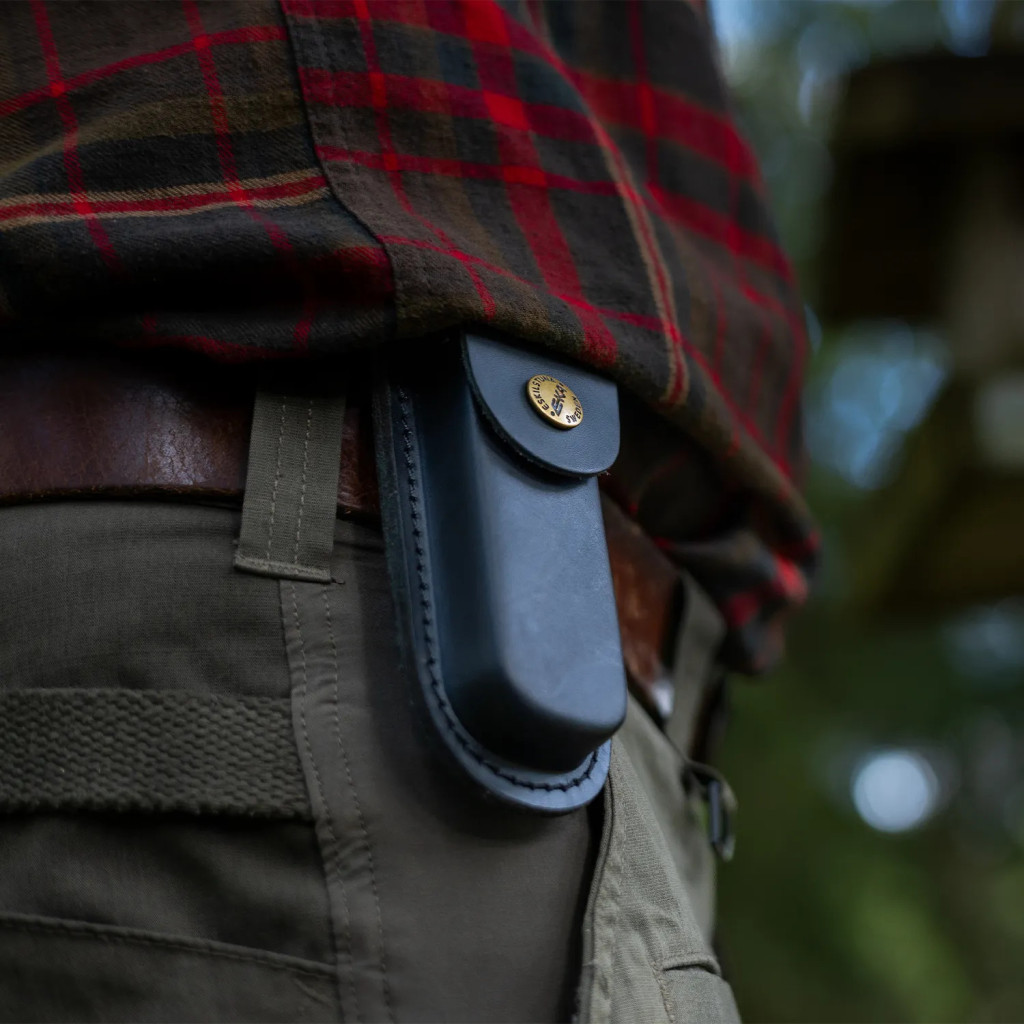 EKA® 5'' Leather Sheath Black je elegantné puzdro na skladacie nože, vyrobené špeciálne pre EKA® Swede 10. Kožený materiál dodáva puzdru exkluzívny vzhľad a pomocou spony na opasok ho môžete bezpečne pripnúť na vrecko alebo opasok.