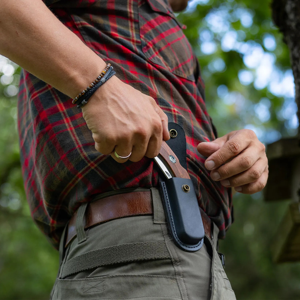 Exkluzívne puzdro z čiernej kože vyrobené špeciálne pre skladacie nože.