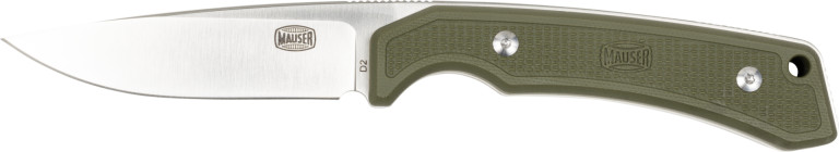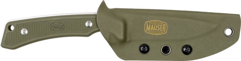 MAUSER. Súčasťou je otvor na šnúrku na rukoväti noža a zelené puzdro na