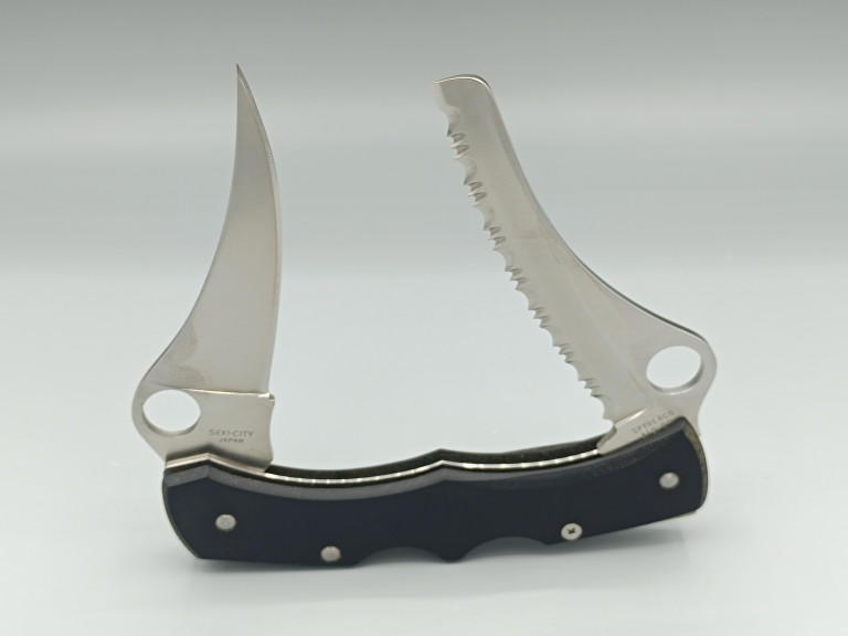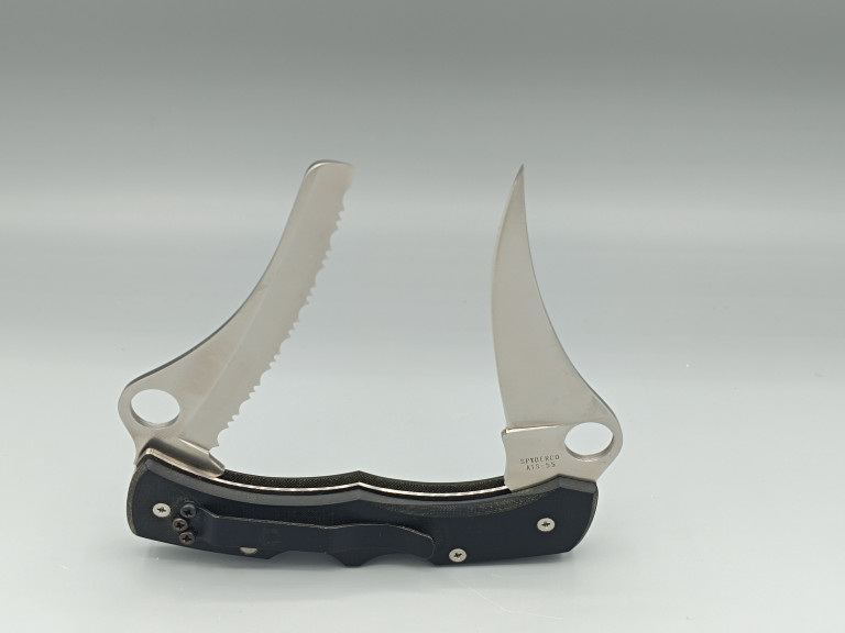 Nôž C44P&S Spyderco Dyad má 3 3/8 palcovú špičku a 3 3/4 palcovú zubatú čepeľ z nehrdzavejúcej ocele ATS-55 s otvormi Spyderco pre obojručné otváranie jednou rukou. Čierna rukoväť z Micarty, 4 5/8 palca v zatvorenom stave, má dvojité poistné zariadenie a čiernu oceľovú sponu na vrecko pre nosenie v ľavej ruke (s hrotom čepele smerom nahor). Nôž C44P&S Dyad má celkovú dĺžku v otvorenom stave 8 až 8 3/8 palca a váži 4,38 uncí. Vyrobené v Japonsku v roku 2000.
