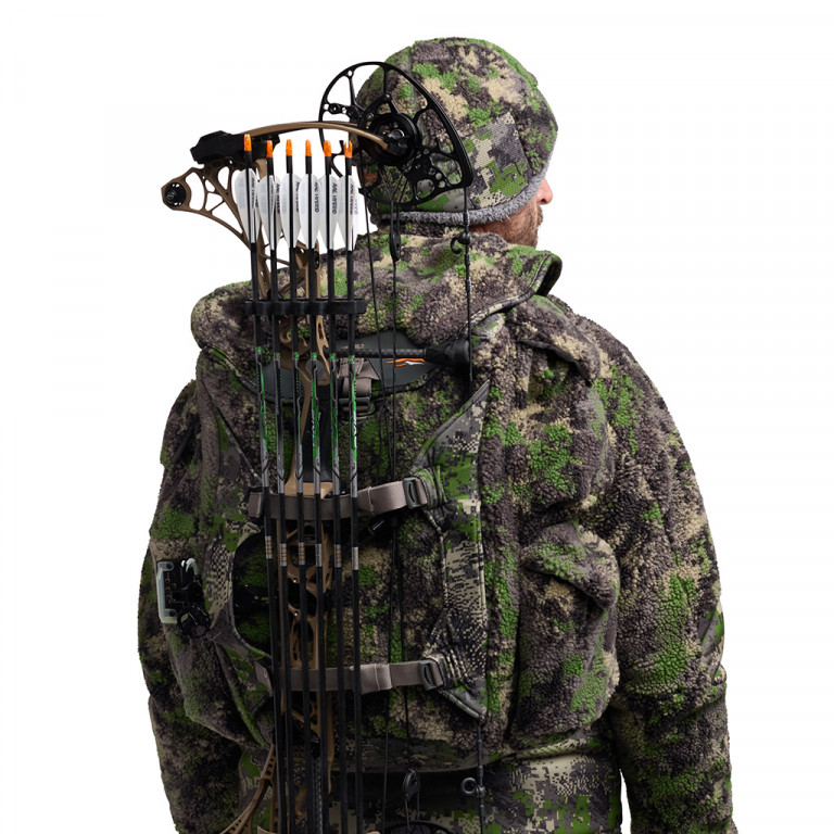 Kompresné popruhy na zbrane a bundy umožňujú tiché prenášanie luku, pušky alebo parohov