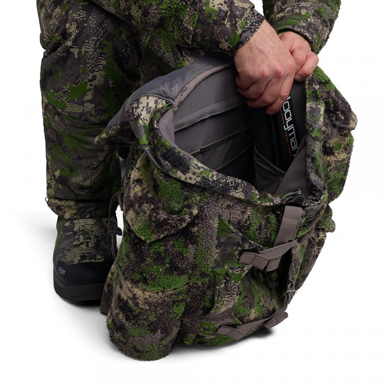 The must-have pack for tree stand hunting has been upgraded with a plastic frame sheet and aluminum stay for ultimate comfort under load. The Fanatic Pack employs the same “Science of Sound” technology that goes into the Fanatic system and features ultra-quiet YKK VISLON® zippers, high-loft jacquard Berber fleece, and our Silent Secure closures on the top lid, eliminating noisy, loose buckles. Side pockets and winged compression straps round out this ultimate utility storage system.